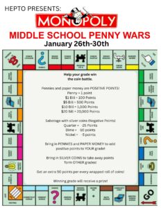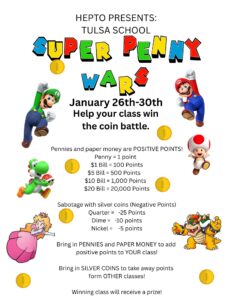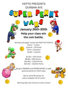 We are doing penny wars again this year!!! This is a fun fundraiser for the kids!